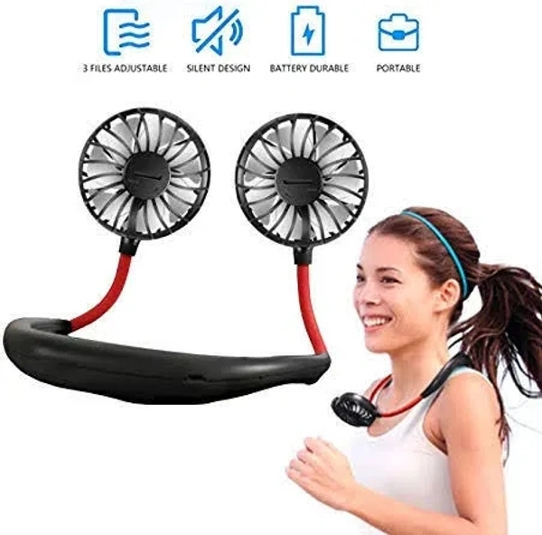 Portable USB Battery Rechargeable Mini Fan - Headphone Design Wearable Neckband Fan